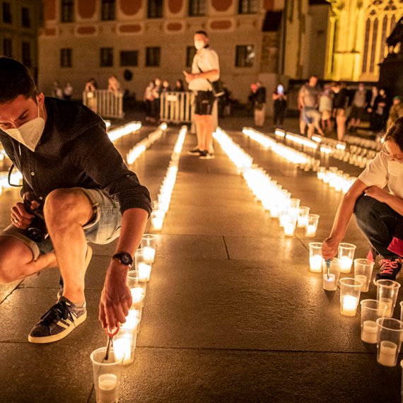 30 тысяч свечей в память о почти 30 тысячах умерших из-за пандемии коронавируса в Чехии