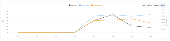 Ежемесячные объёмы торговли невзаимозаменяемыми токенами (NFT) сокращаются...