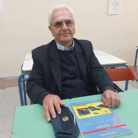Житель Афин Василлис Панайотаропулос пошел в вечернюю школу на девятом...